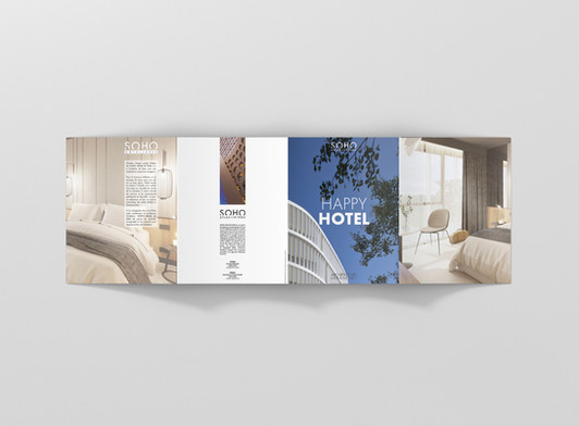 Avec le site internet, la plaquette est l'un des principaux outils du commercial. Pour Soho, l'ambition a été de constituer un kit dédié au développement avec un tote bag personnalisé et une batterie de plaquettes thématiques valorisant les domaines d'expertise de l'agence. Objectif : profiter de chaque déplacement des associés pour diffuser l'image de marque de l'agence.